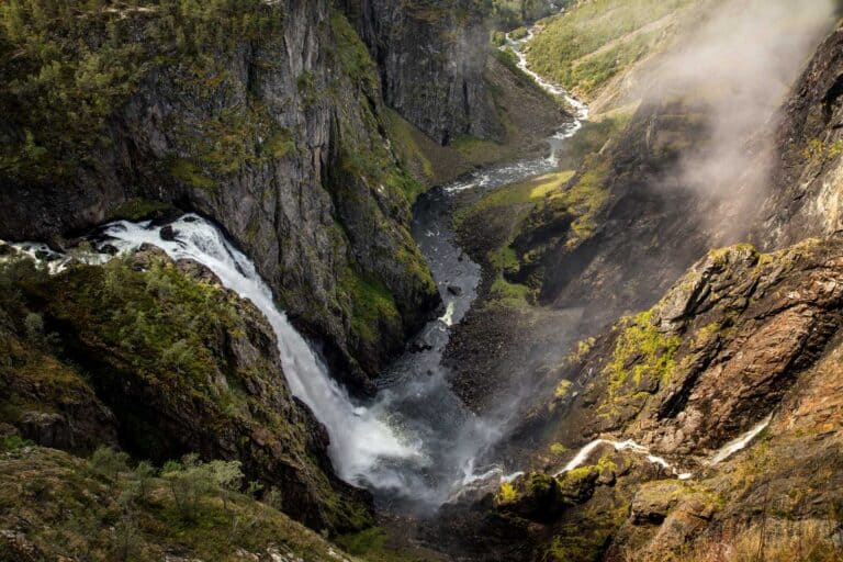 Bussen fortsetter deretter opp de bratte og svingete hårnålsvingene gjennom det dramatiske landskapet i Måbødalen. Når du ankommer Vøringsfossen, har du 44 minutter til å utforske de dramatiske omgivelsene og ta bilder av fossen. Til slutt tar bussen deg tilbake til Eidfjord der turen startet.